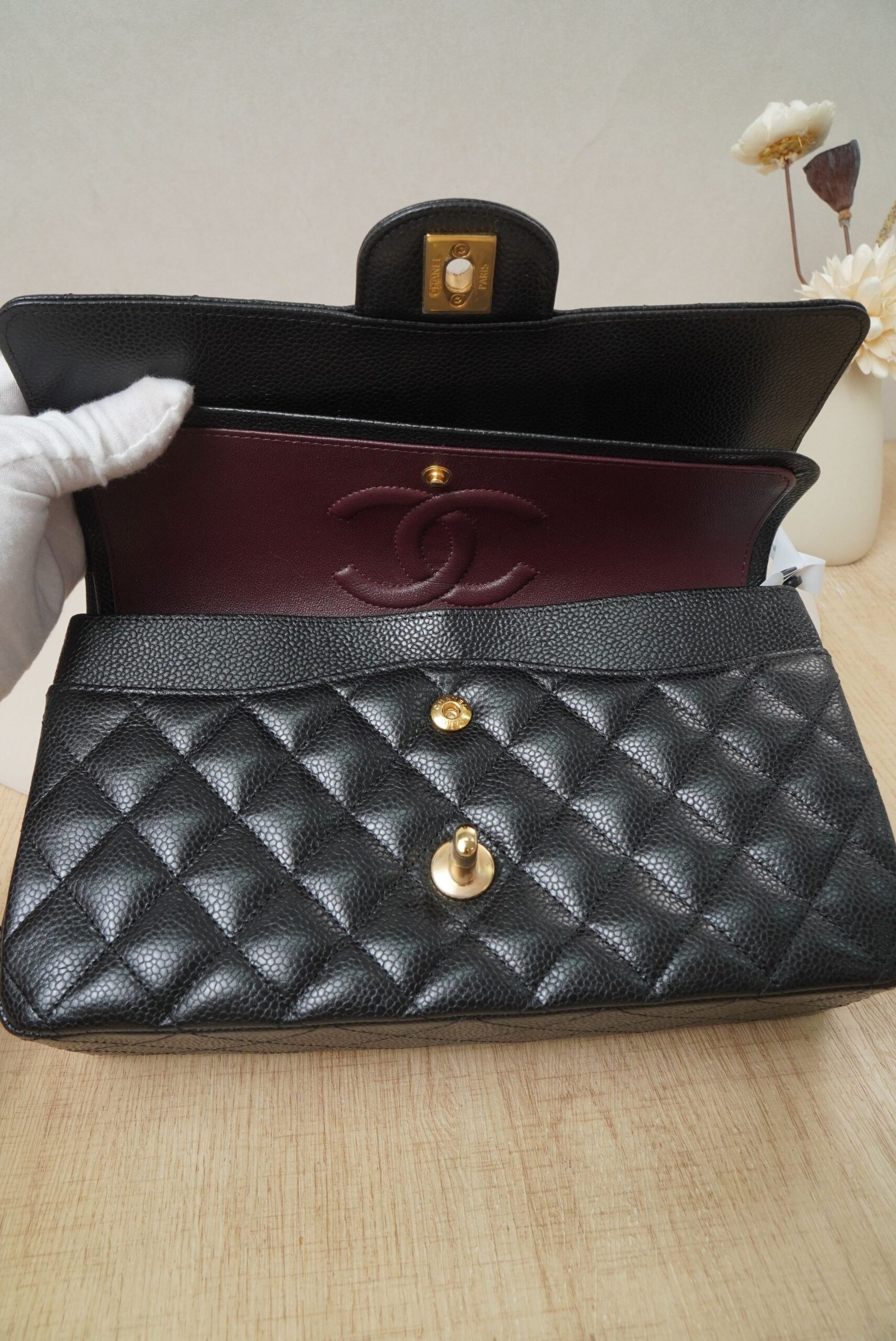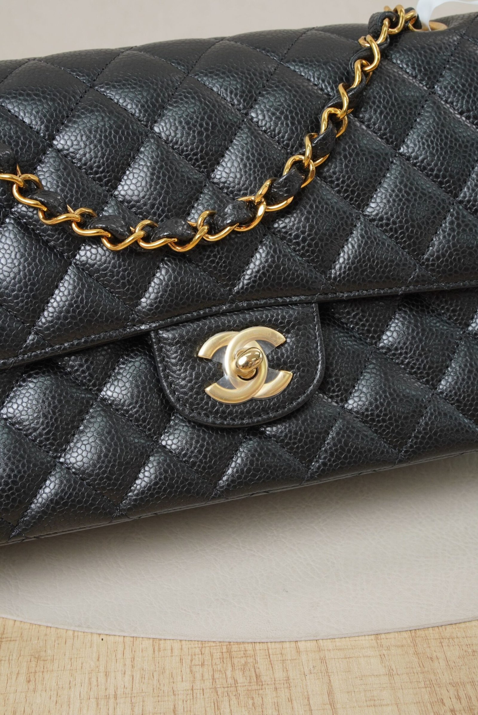 Be the first to review “Chanel Classic Flap Bag Medium Black Caviar Leather with Gold Hardware (RFID Chip Version)” Cancel reply