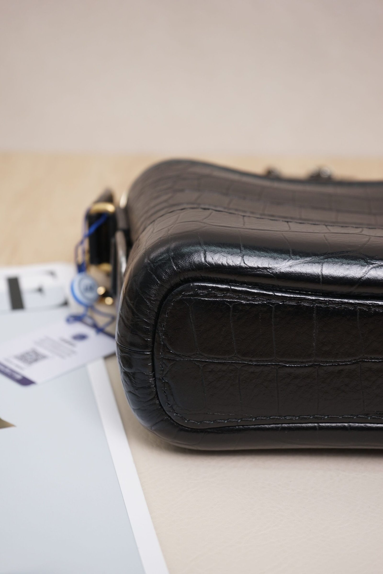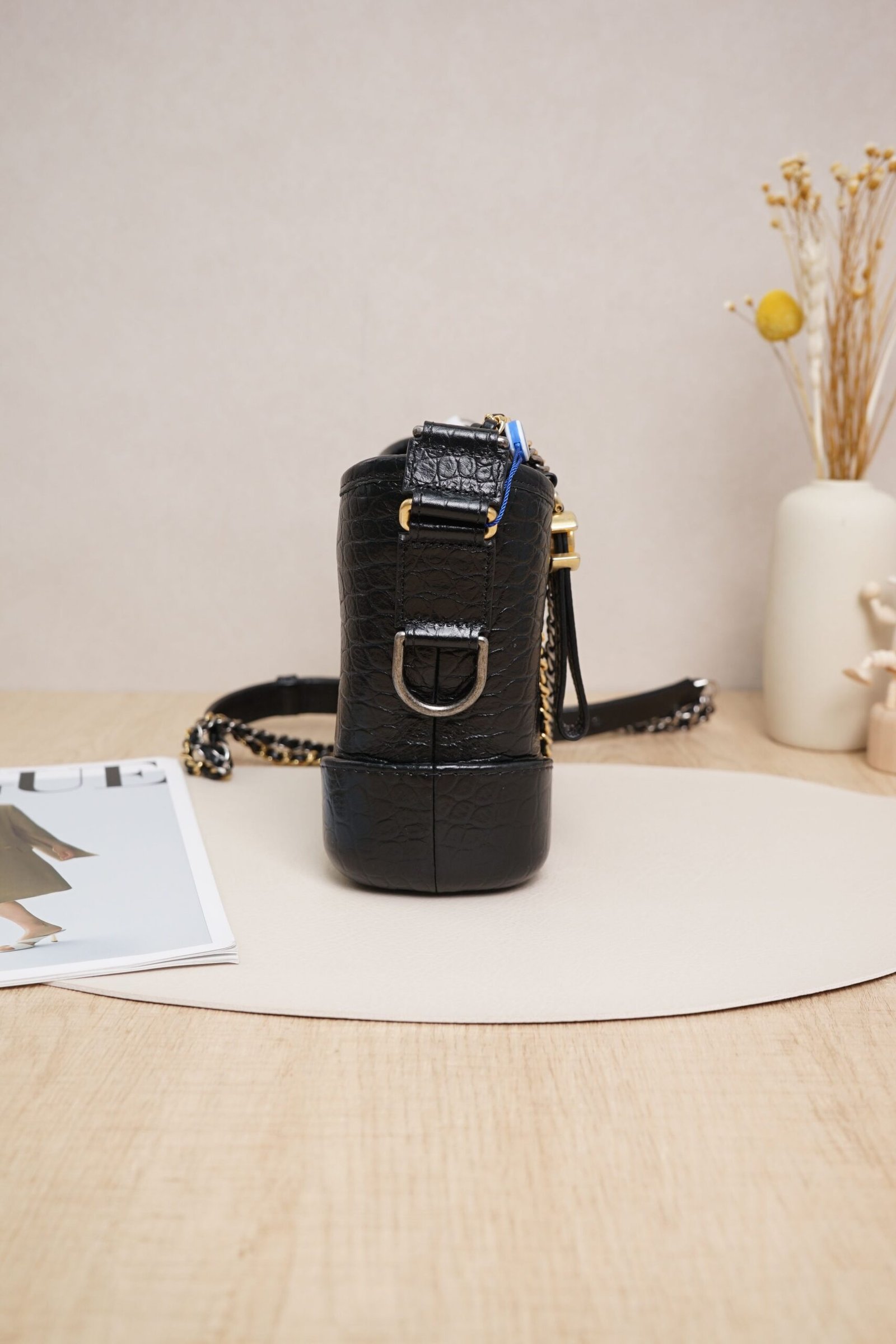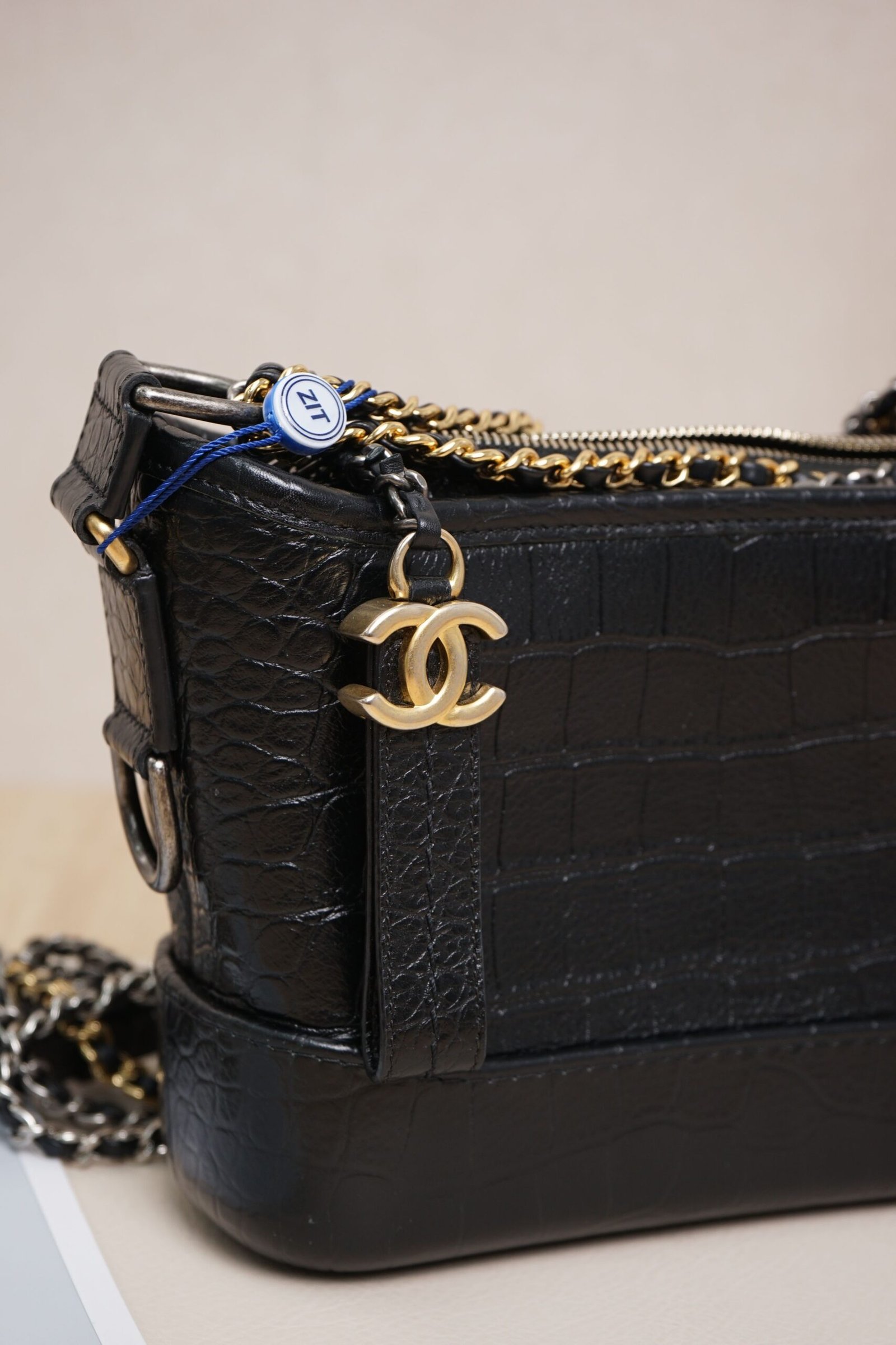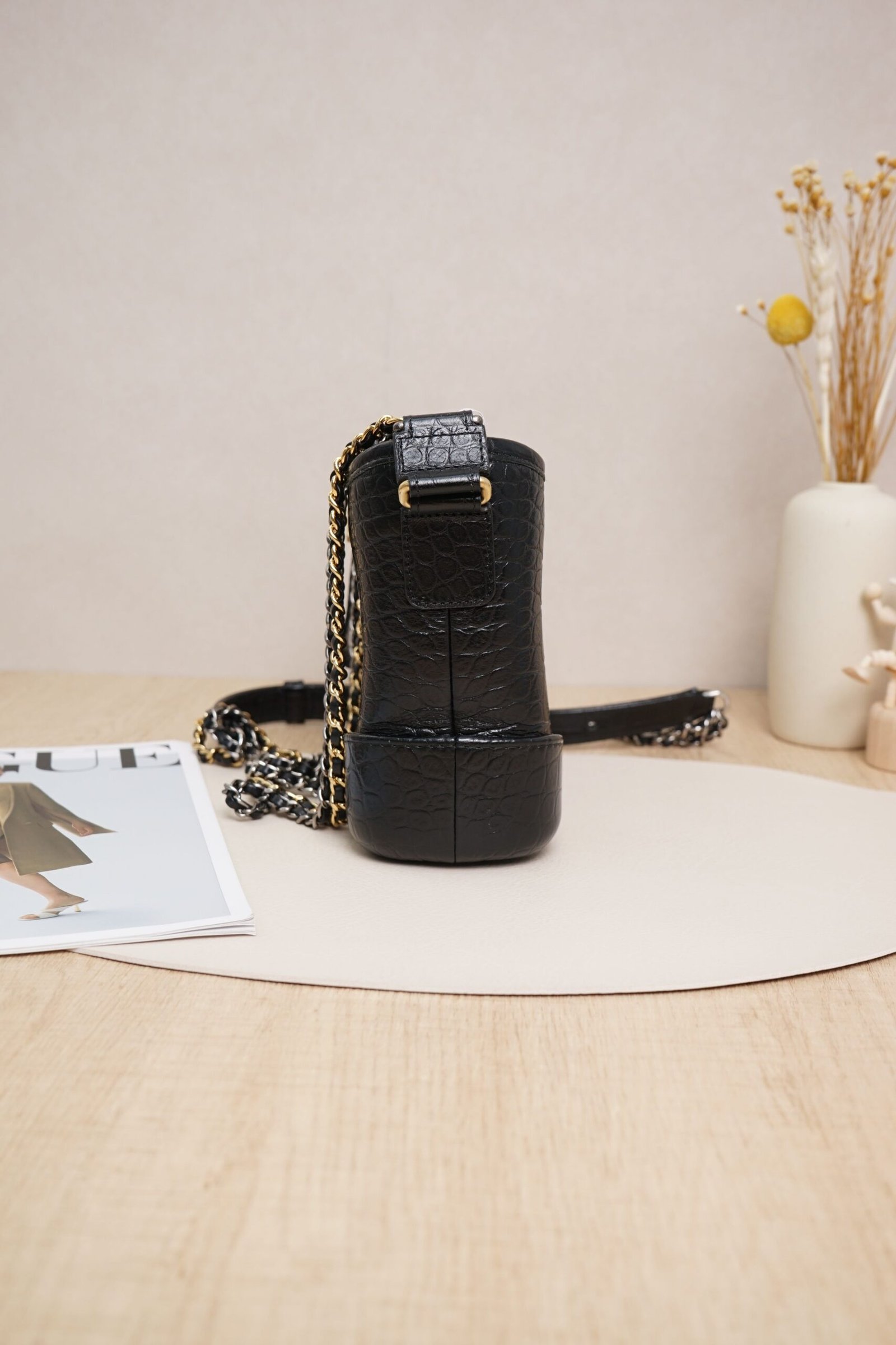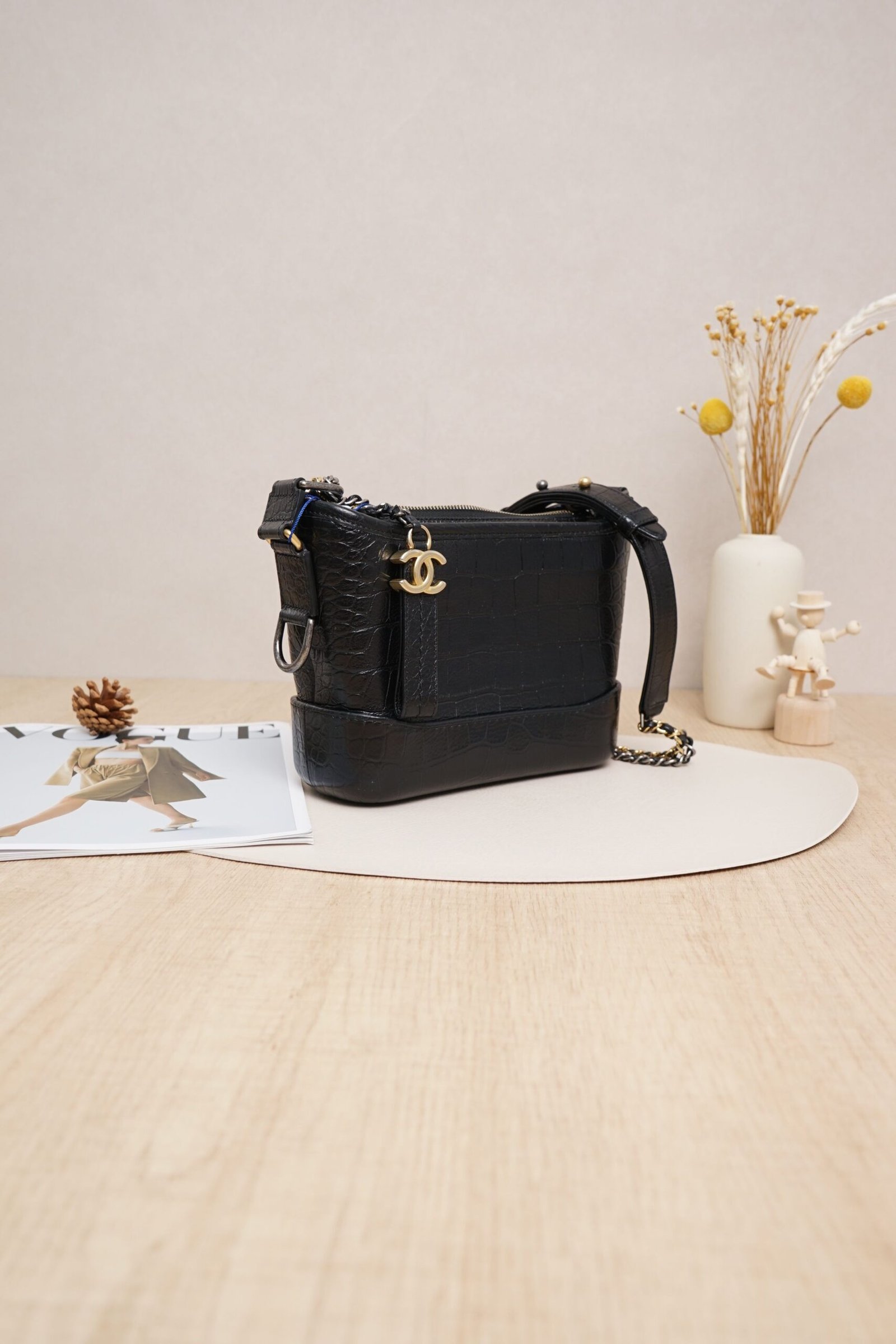 Chanel Gabrielle Small Black Croc-Embossed Calfskin Leather with Gold Hardware (28 Series)